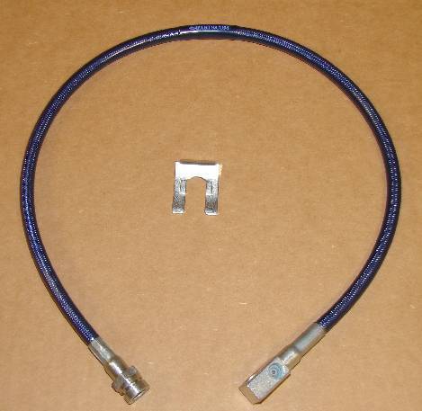 Highest quality rear brake line is DOT Approved for on-road and racing conditions. Brake pedal response is immediate. Pressure tested to 4500 PSI. Each brake line has a teflon inner core, Kevlar braid, protective layer, stainless steel outer braid, protective vinyl cover and one-piece crimp design connector. Comes in Blue.