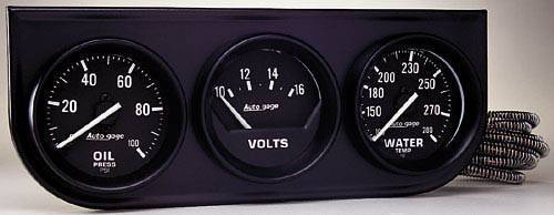 - Each Gauge on This Black Three-Gauge system is a Full Sweep 2-1/16" Mechanical Gauge with black dial and bright numbering.