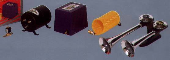 Electric valve operated/120 Decibels-235 HZ. Roof mount air horn. Comes complete with a maintenance free on board air system. Kit includes everything that is needed to install on any 12 volt vehicle: a deluxe roof mounted horn that is all metal with triple chrome plated trumpets, heavy duty compressor, tank, hoses, mounting hardware, and instructions. All moving parts of the air compressor are manufactured to precision tolerances. The compressor's motor computer balanced, reducing noise and vibration. The kit also includes 20 feet of plastic hose with air fittings to inflate tires, shocks, rafts or any application requiring air. The trumpets are built on a heavy mounting base that secures to the vehicle using four rust- resistant stainless steel bolts. Kit comes with all needed mounting hardware. Horn size: L 16 1/2 in. x W 8 in. x H 4 3/4 in. All metal, chrome plated trumpets. 12 volt compressor. Tank capacity: 2 1/2 liters. Electric solenoid 12 volts/300 milliamps.