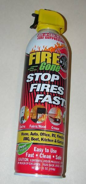 - Fire Gone is excellent for use on small vehicle fires, in the garage, or at the campground.