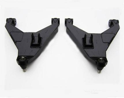 These performance lower control arms are an excellent upgrade for those looking for a stronger, more functional LCA. These will work on 2wd or 4wd vehicles. We have corrected the ball joint angle reducing stress and wear on the joint. We have also improved the shock placement allowing for additional clearance between the axle and the shock eliminating axle rub on 4wd vehicles. With this arm you have the option of running limit straps and hydraulic bump stops. Our Stock Replacement LCA's are a direct bolt on part and does not increase track width or affect the turning radius. These are fully CAD designed, cnc laser cut and bent to ensure a quality fit. They include aftermarket Moog greasable ball joints which far stronger than the factory ones. Our arms come fully assembled to save time and easy installation. These arms are designed to be used with OEM replacement coilovers and without a sway bar.