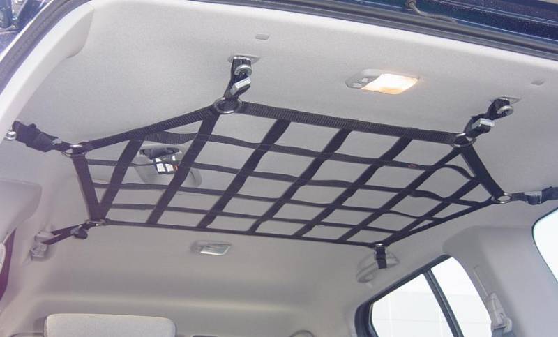 - To tighten the net back up, just pull the strap and up it goes, flush with the roof and not blocking your rear vision.