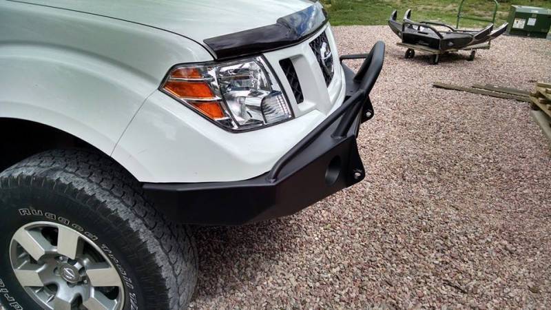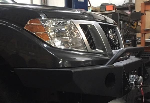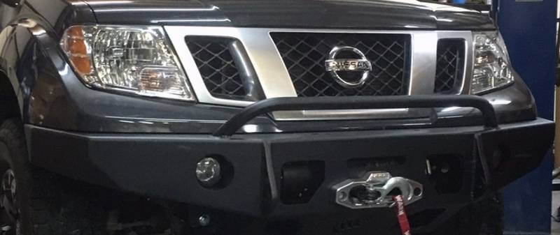 This bumper can handle the harshest off road abuse. Unlike other aftermarket bumpers that use thin 1/8" or thinner metal, this bumper is built with strength in mind. Using the only highest grade A36 American Steel, the 3/16" main body, 3/8" mounting plates, sleeved and integrated recovery points make this the strongest bumper available for your Frontier. The recessed winch mount accepts most winches up to 9500lbs with standard 10"x4.5" mounting pattern and a non-integrated solenoid.