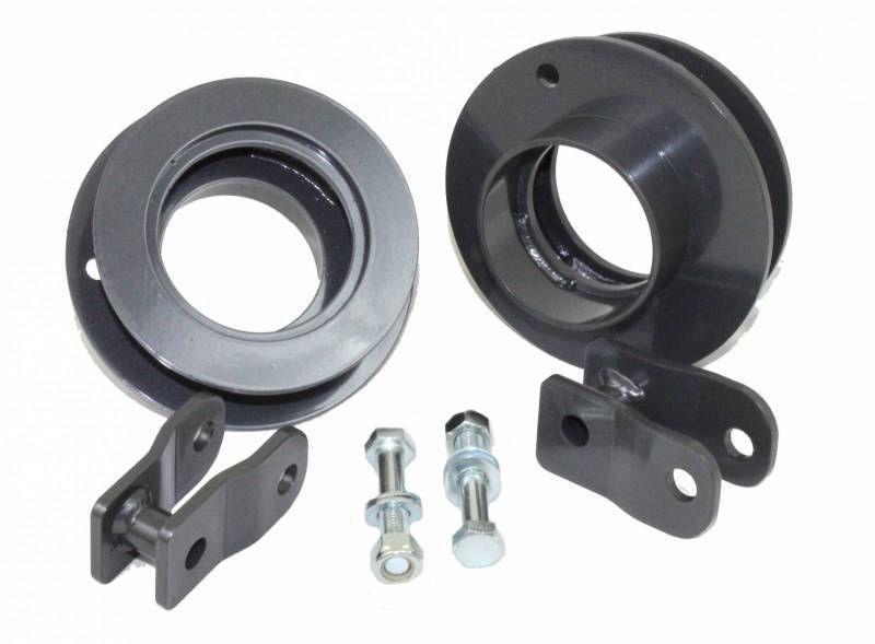 Maxtrac Suspension aluminum coil spacers are the simplest and most effective way of leveling the front of your coil spring suspension vehicle. Their construction allows long life, with no sagging, unlike polyurethane coil spacers that deteriorate over time. This kit also comes with our shock extenders.