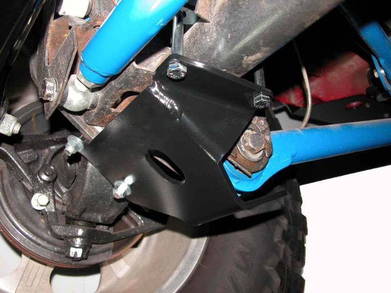 Skid plates are completely bolt-on and protect the mounting tabs of the lower control arms on the Dana 30 or 44 front axle. Why does this matter? Simply because the mounting tabs are among the first parts to hit the rocks and they are pretty easily damaged. The tabs are made of surprisingly thin material and we've seen and heard of them being literally torn off while wheeling. Other companies offer beefier mounting tabs that you can weld in place once the originals are damaged, but why let them get damaged in the first place? Replacing these tabs with beefier ones takes a lot longer than preventing the damage.