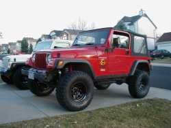 Finally got rid of my frontier and got a REAL 4x4! Here is my '00 TJ: 3.5" Rubicon Express Super-Flex w/ ProComp ES9000s, 33x12.5 MTR's on 15x8 Blk AR Rockcrawlers (BFG 33x12.5 MT spare), Bestop Bikini Top, CB, Optima Red Top Battery, Hi-Lift, Tera Flex S