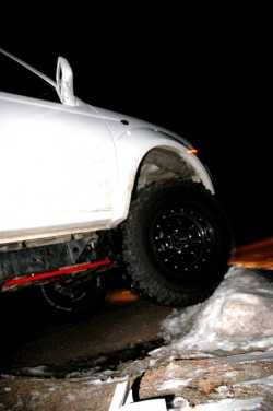 03' Fontier SE Kingcab 4x4. 3" Suspension, 3" BL, riding on 16" rockcrawler w/sim beadlock and 33" BFG Mudd Terrains.