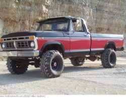 1976 Ford F-250 Highboy. Some lift. It has 35's in the picture, which I just sold, now Im in the process of puttin on 40's and 3 more inches of lift. It has a built 390 motor. In the winter I have tires that came straight from the Military that was going