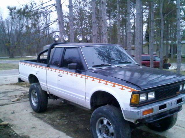 this is my 720 king cab 4x4 mod include 3 inch body 3 inch suspension undercoated body and frame soon to be mods are 4.3/350turbo solid axle